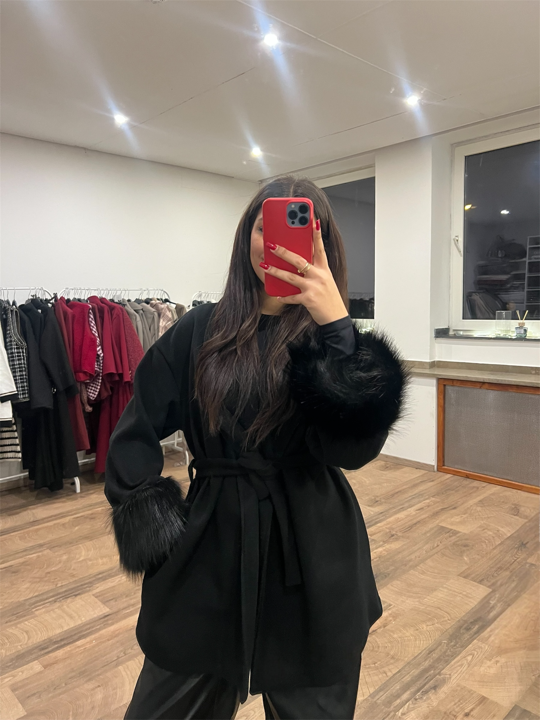 Luxuriöser Mantel mit Kunstfell Ärmeln